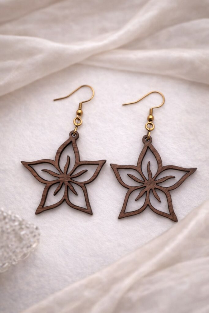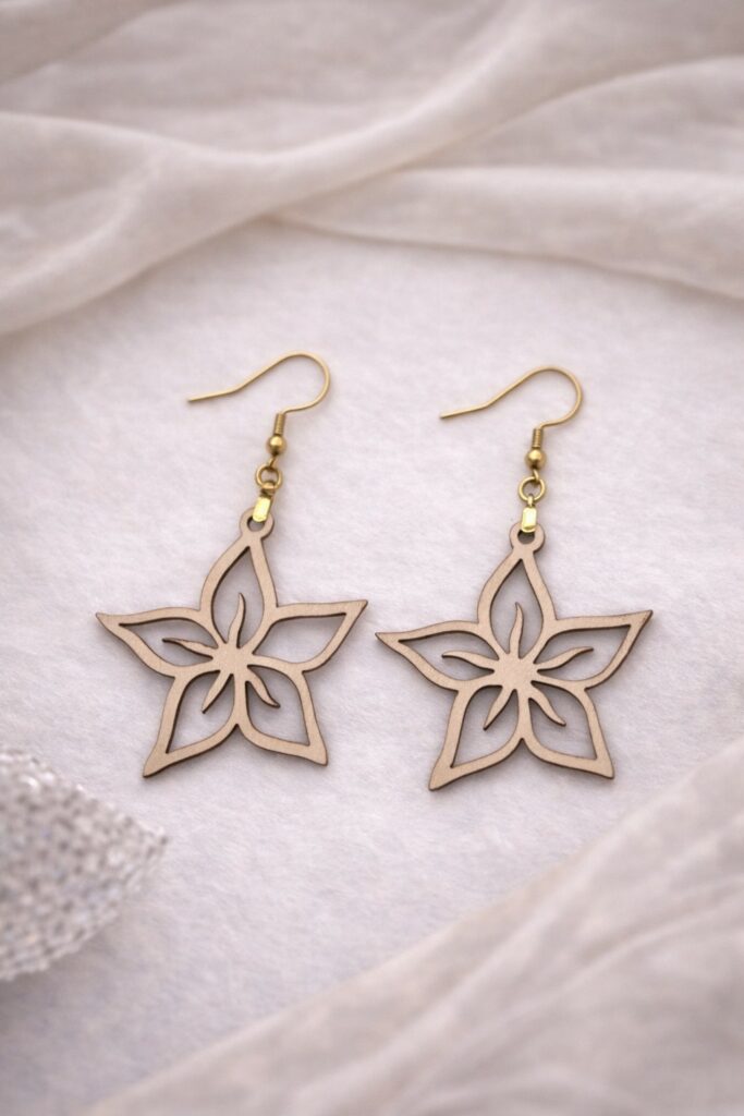 Ces boucles d’oreilles en bois clair séduisent par leur motif ...