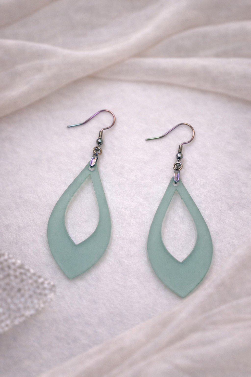 Élégantes et aériennes, ces boucles d’oreilles à la ligne goutte séduisent par leur teinte vert sauge délicatement poudrée. Leur finition mate apporte une touche contemporaine et raffinée, tandis que leur design épuré sublime le port de tête avec légèreté.