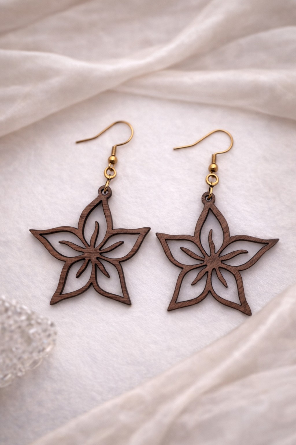 Ces boucles d’oreilles en bois foncé révèlent un design floral délicatement ajouré, à la fois chaleureux et raffiné. Confectionnées artisanalement, elles mettent en valeur la profondeur naturelle du bois et ses nuances subtiles. Leur silhouette légère apporte une touche d’élégance tout en restant agréable à porter. Une création authentique qui allie caractère, finesse et savoir-faire artisanal.