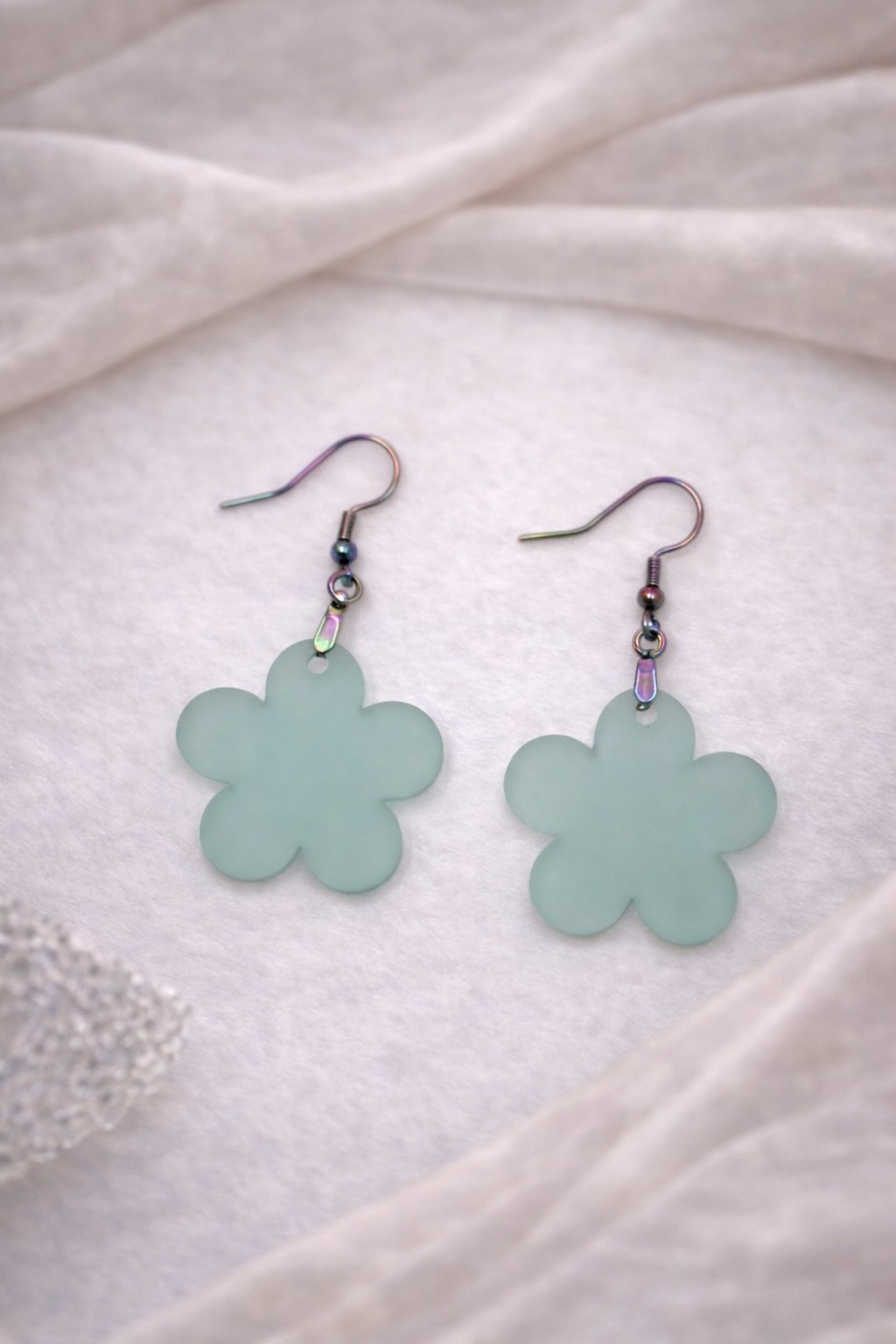 Délicates et lumineuses, ces boucles d’oreilles en acrylique à la finition mate apportent une touche de fraîcheur et de douceur à toutes vos tenues. Leur forme florale épurée capte la lumière avec subtilité et souligne le visage avec élégance.