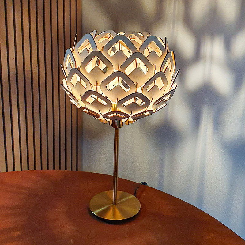 Avec sa structure ajourée en bois clair, cette lampe Lotus diffuse une lumière douce et graphique qui se projette délicatement dans l’espace. Les jeux d’ombres créés par ses découpes florales apportent du relief et une atmosphère chaleureuse, tout en restant élégants et apaisants.