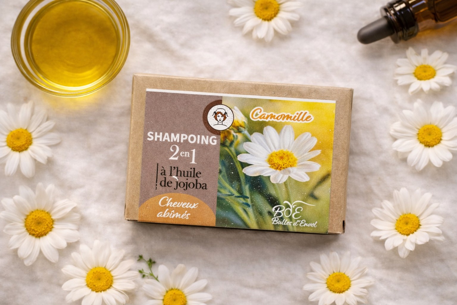 Sa fragrance fleur de camomille, délicate et réconfortante, enveloppe la chevelure d’un parfum doux et apaisant.